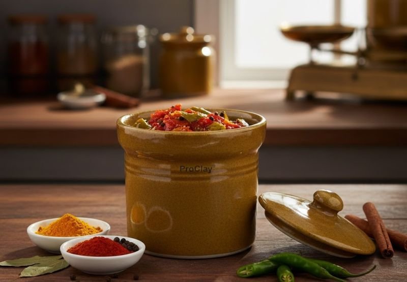 Ceramic apple pickle jar, the ceramic straight jar from ProClay Industries is a premium, handmade, and food-grade ceramic jar for kitchen storage, designed for everyday use. This versatile ceramic container is ideal for storing spices, dry foods, snacks, pulses, and condiments while maintaining freshness and hygiene. Manufactured using traditional pottery techniques, our ceramic jars with lids offer durability, moisture resistance, and an elegant finish suitable for modern and traditional kitchens. As a trusted ceramic jar manufacturer in India, we supply straight ceramic jars in multiple sizes for domestic use, bulk buyers, and export markets, making them a preferred choice among ceramic jar suppliers and exporters from India.